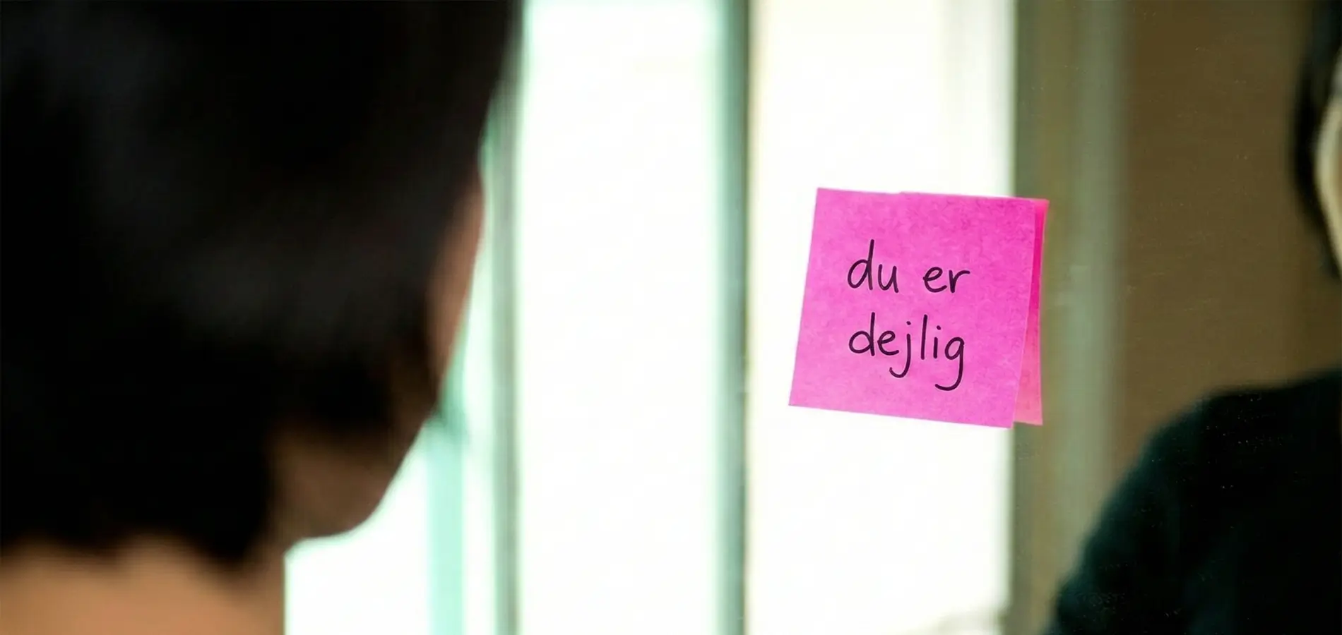Sund og frisk’s tip: Skriv en lille positiv besked på dit badeværelsesspejl med en læbestift eller en post-it. Noget så simpelt som ”Du er dejlig” eller ”Du stråler i dag” kan være præcis det kærlige puf, du har brug for, før du træder ud af døren.
